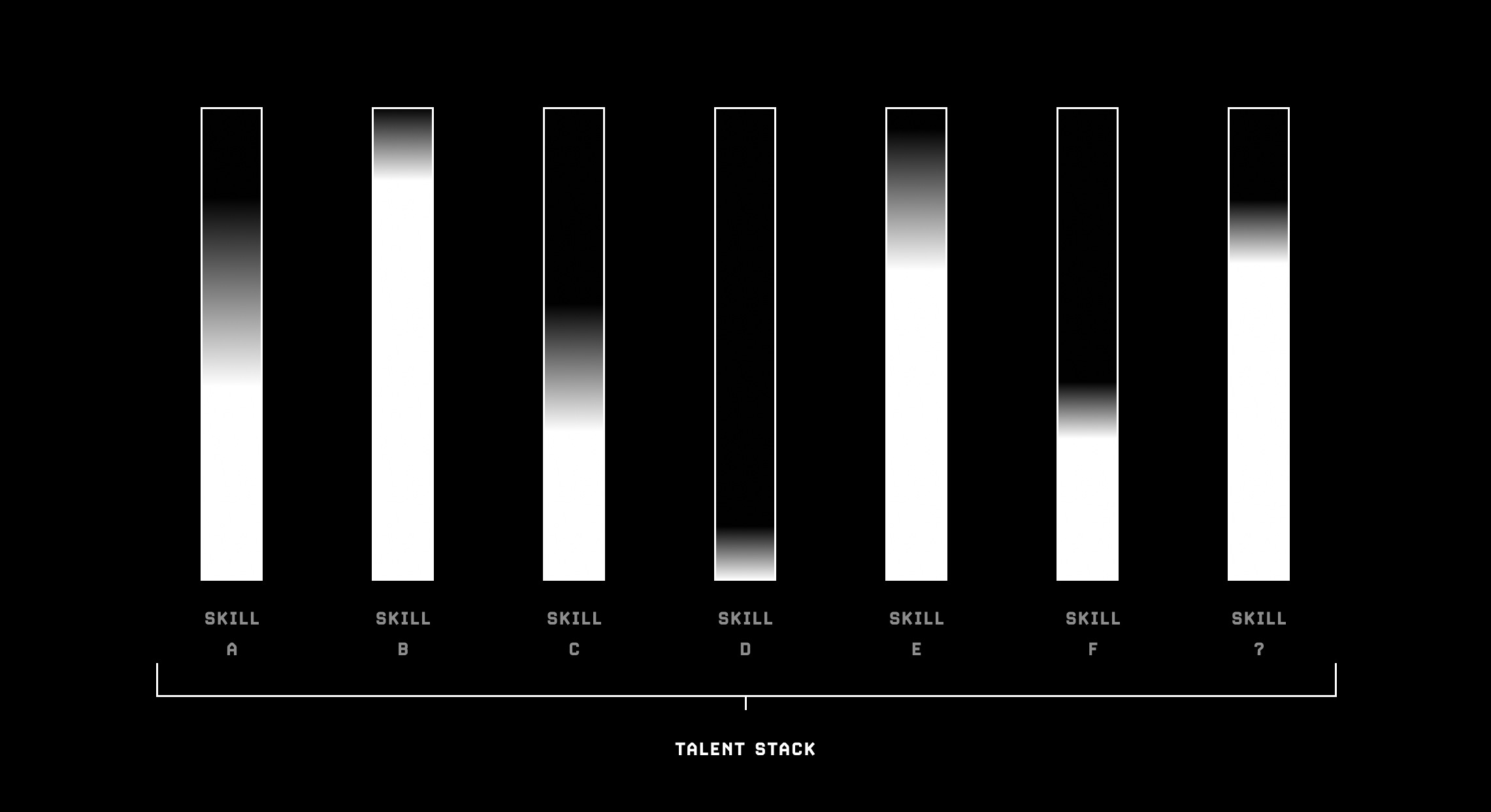 The way I think of them is the following: rather than focusing solely on individual skills, Talent Stacks emphasize the combination of various complementary abilities, character traits, and experience that blend together in order to create a unique and valuable person. They resist the urge to treat skills in a check-box, “you have it or you don’t” type manner and instead recognize that skills exist on a gradient - meaning you can have differing levels of ‘proficiency’ depending on the area. But they do not only look at skills in isolation - instead, they also look across the full combination of those skills to understand how those traits interact and overlap to create the entirety of the skillset. By looking both at individual ‘talents’ and the subsequent stack they form, Talent Stacks give us a dual model that can be applied to both individuals and - as we will see in a moment - teams.